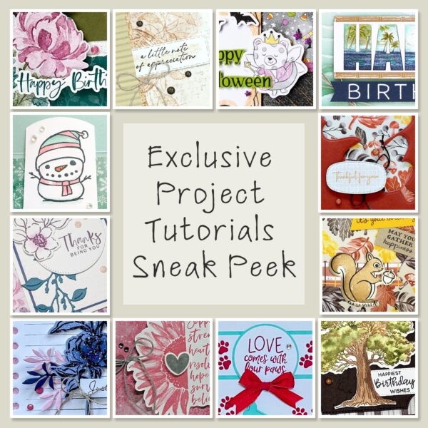 Want to earn EXCLUSIVE video tutorials once a month featuring the latest Stampin’ Up! product suites? Each month you will receive 12 tutorials all bundled together when you place a qualifying $50 or more order with me through my online store for FREE!
