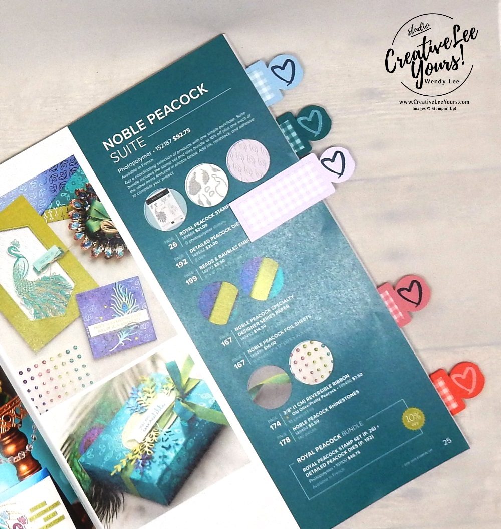 Do you find yourself adding lots of sticky notes or folding back the corners of pages in your catalogs to mark your favorite items? Today I am sharing some super cute catalog tabs I made and gifted to all those that attended the Catalog Kickoff party last weekend. These tabs are easily moved around without damaging your pages.