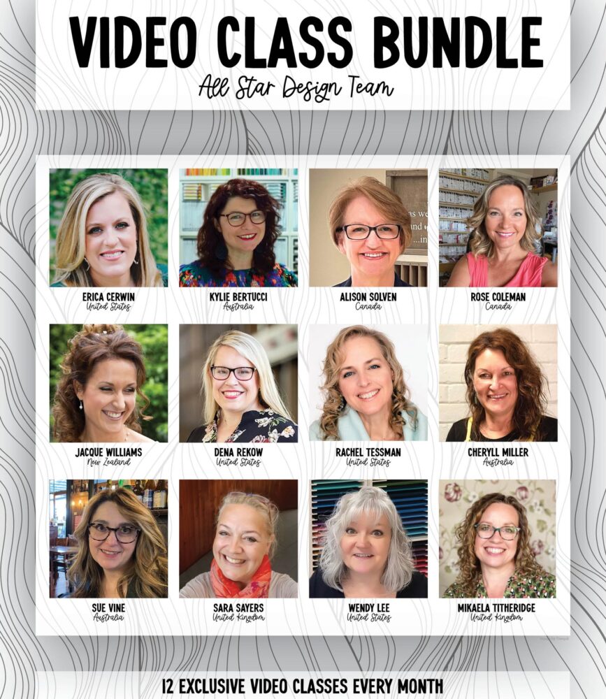 Each month’s Video Class Bundle will focus on a collection of the latest Stampin’ Up! products and includes TWELVE projects, with a how to video tutorial for each project, as well as photos, measurements and product lists. We even have measurements in both imperial and metric so anyone can create them. Yes, you’ll be able to create these projects right along with us for continuous crafting joy and inspiration!